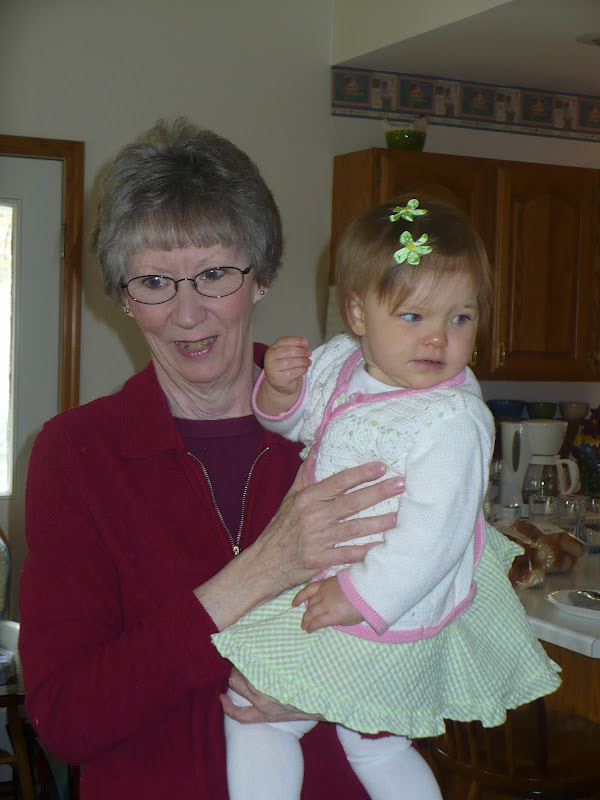 opening babies present from the Easter bunny at Nana and Papa's |